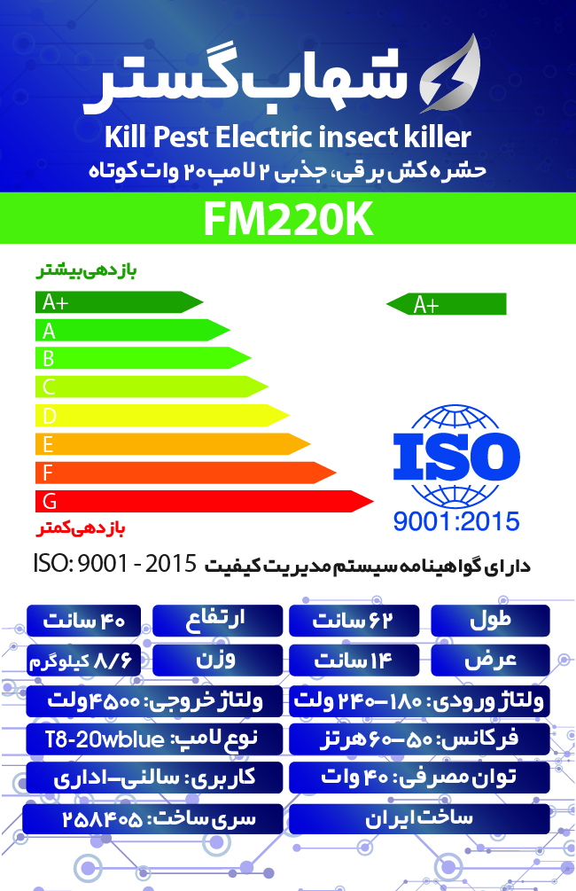 حشره کش برقی و جذبی شهاب گستر مدل FM220K