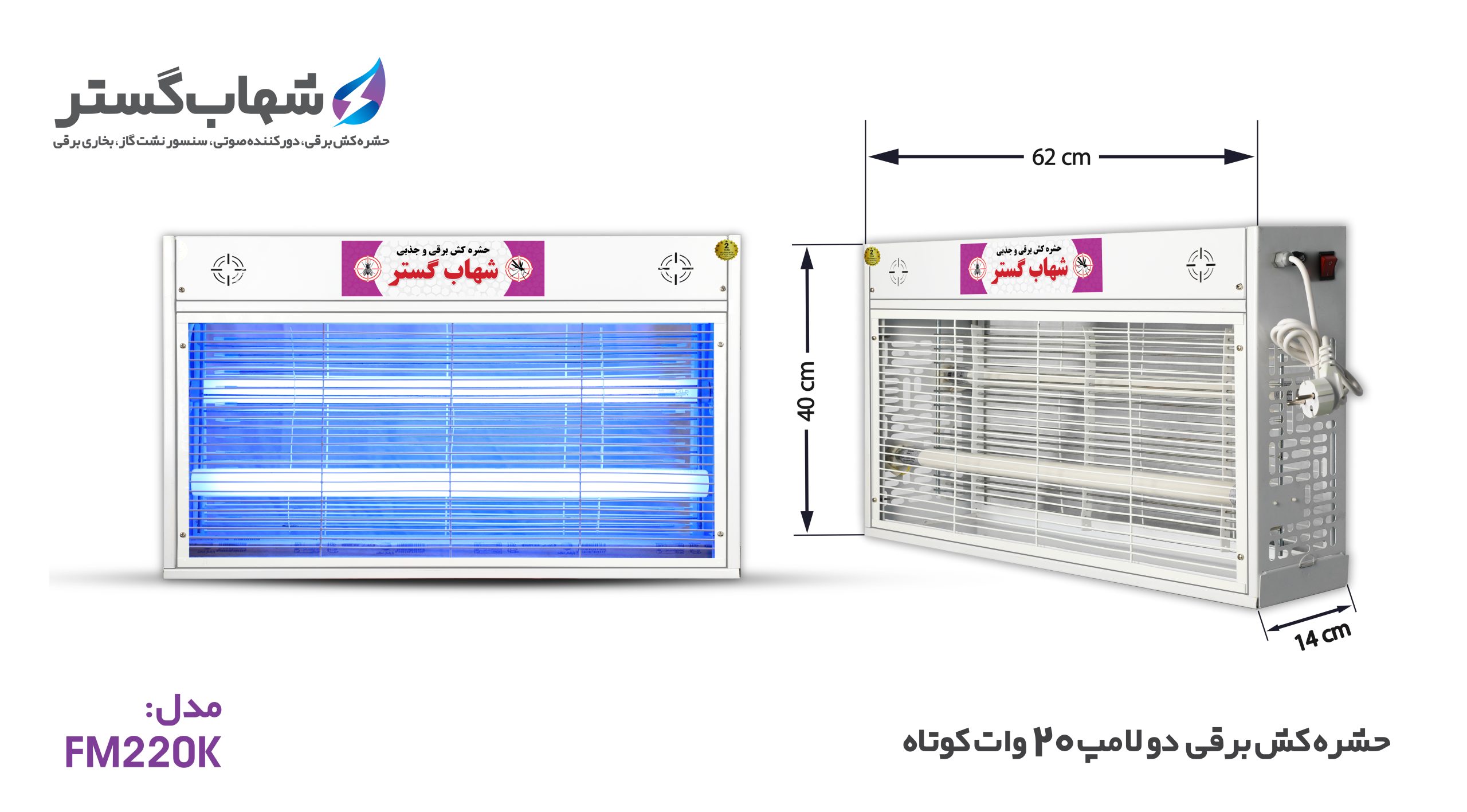 حشره کش برقی و جذبی دو لامپ 20 وات یو وی کوتاه شهاب گستر مدل FUV220K