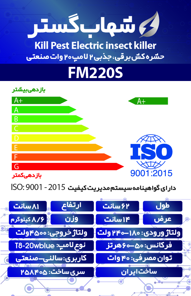 حشره کش برقی و جذبی شهاب گستر مدل FM220S صنعتی